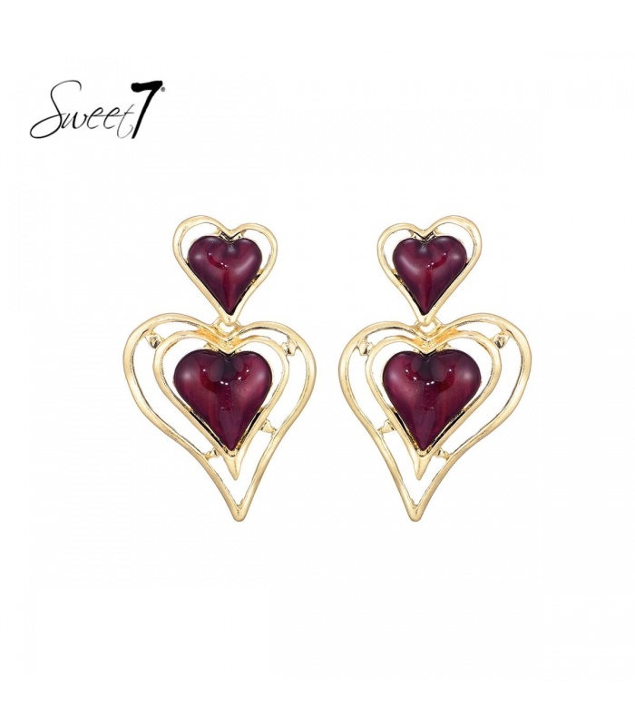 Wil je een oorbel die speels en elegant is? Deze oorbel combineert diepe bordeauxrode harten met een verfijnd goudkleurig omlijnd hart. Het contrast tussen de glanzende steen en de open vorm geeft een romantische, opvallende uitstraling.