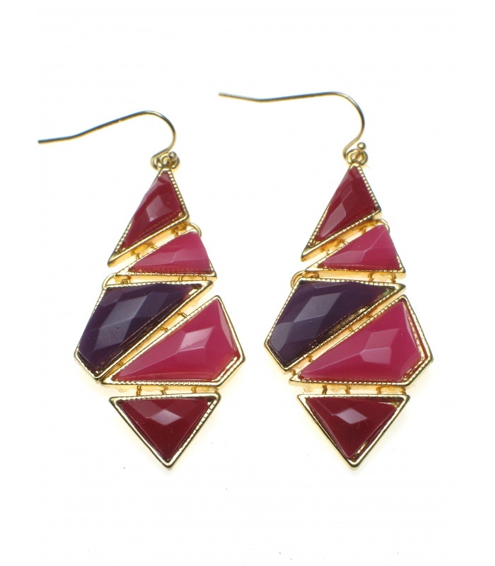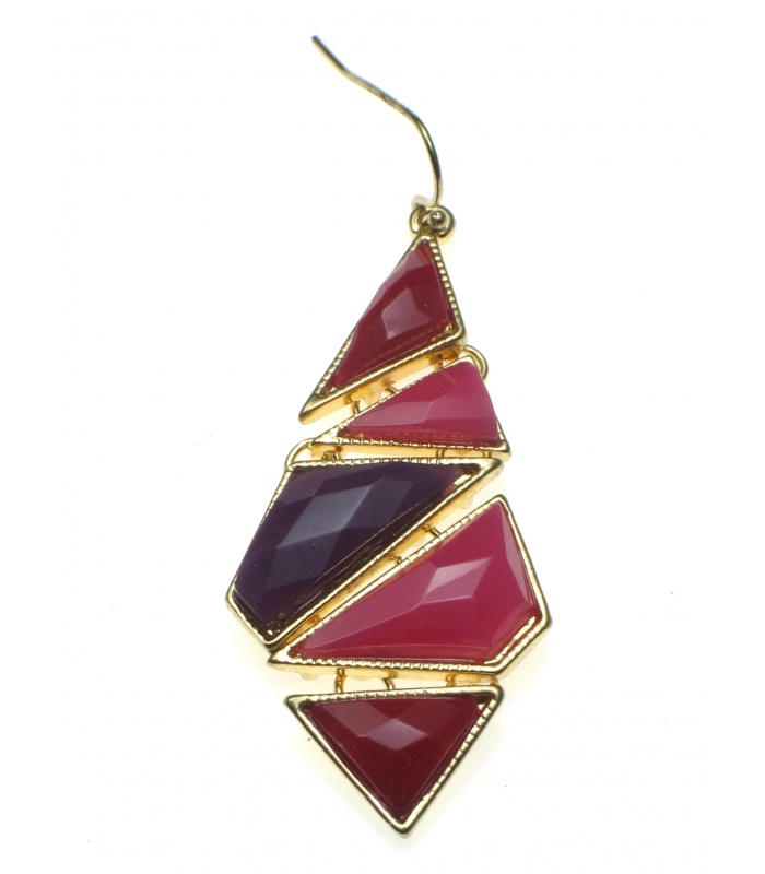 Oorbellen met rode en paarse stenen in een ruitvorm