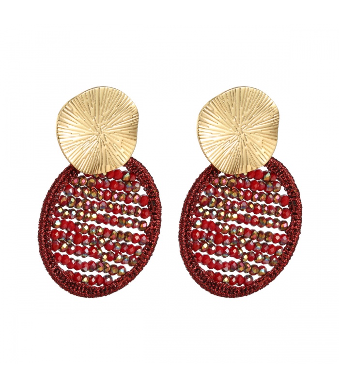 Mooie rode oorbellen met kristallen kraaltjes en een goudkleurig oor stukje