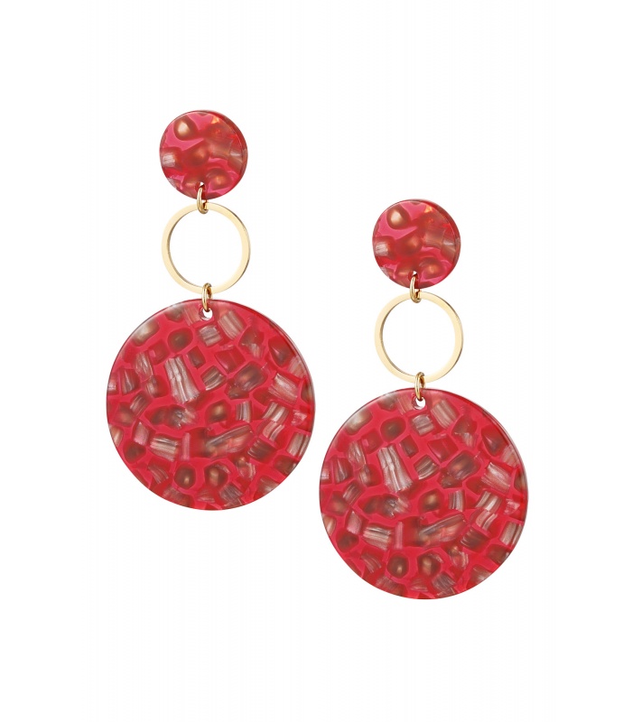 Gemaakt van hoogwaardige materialen en met oog voor detail ontworpen, stralen deze oorhangers klasse en elegantie uit. De rode bewerking geeft een speelse en levendige uitstraling, terwijl de goudkleurige cirkel een luxueus element toevoegt. De oorhangers zijn lichtgewicht en comfortabel om te dragen, waardoor je ze de hele dag kunt dragen zonder enig ongemak. Met hun opvallende lengte zorgen ze voor een prachtig bewegend effect wanneer je ze draagt.