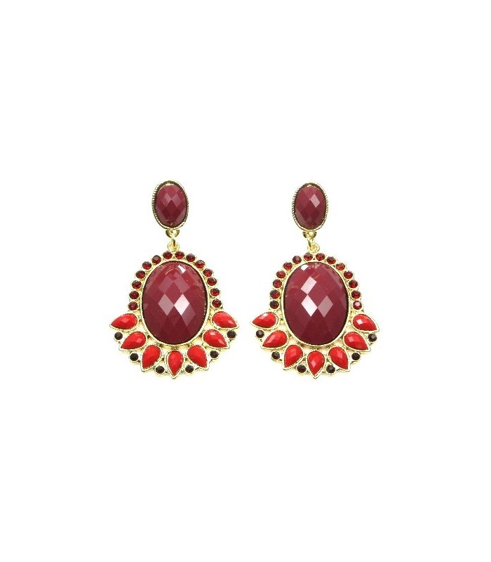 Rode oorhangers met strass steentjes en rood oorstukj.