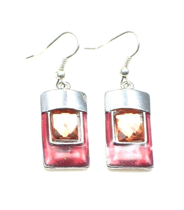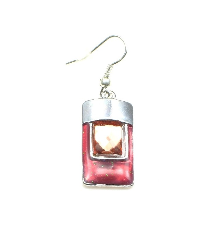 Zilverkleurige oorbellen met rood en...