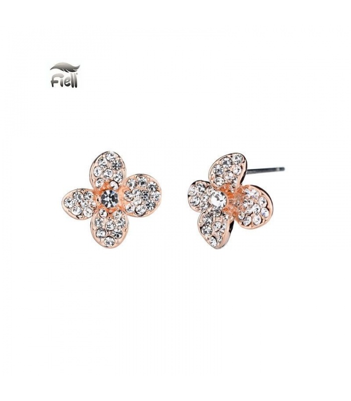 Roségoudkleurige oorknopjes in de vorm van een bloem met steentjes