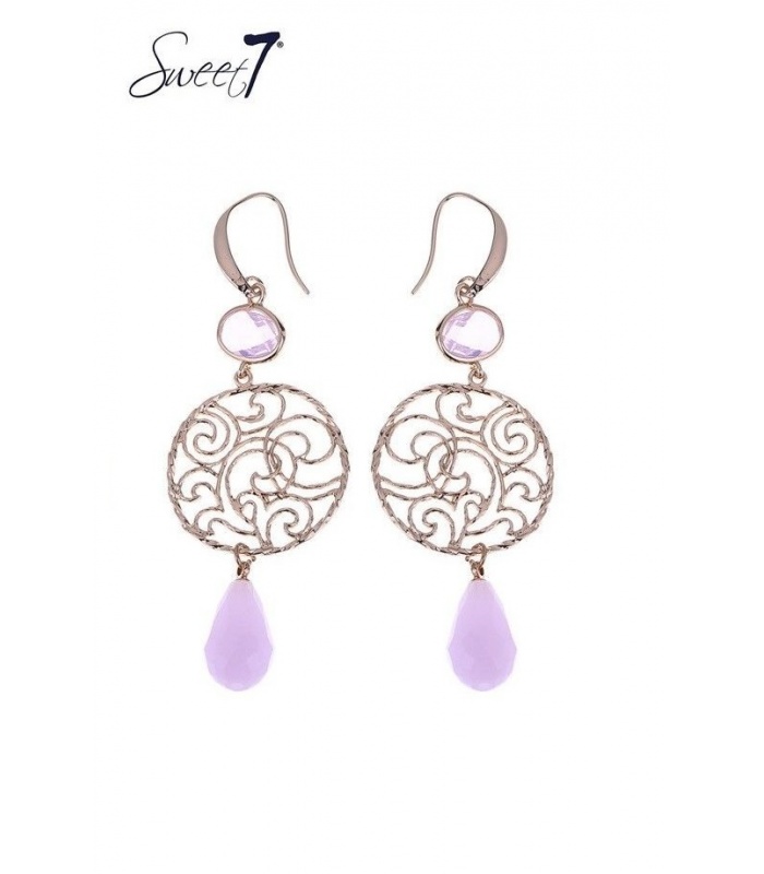 Rose gold oorhangers met een mooi motief en roze kraal.