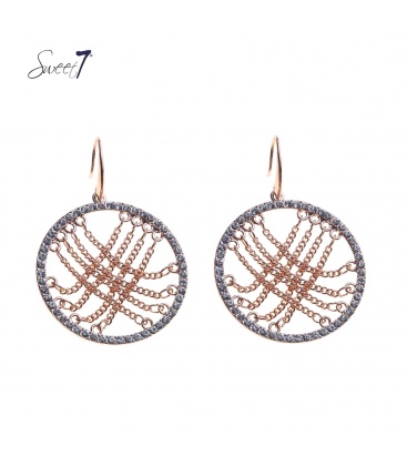Rose gold oorhangers met strass steentjes en kettinkjes kruislings in de hanger.