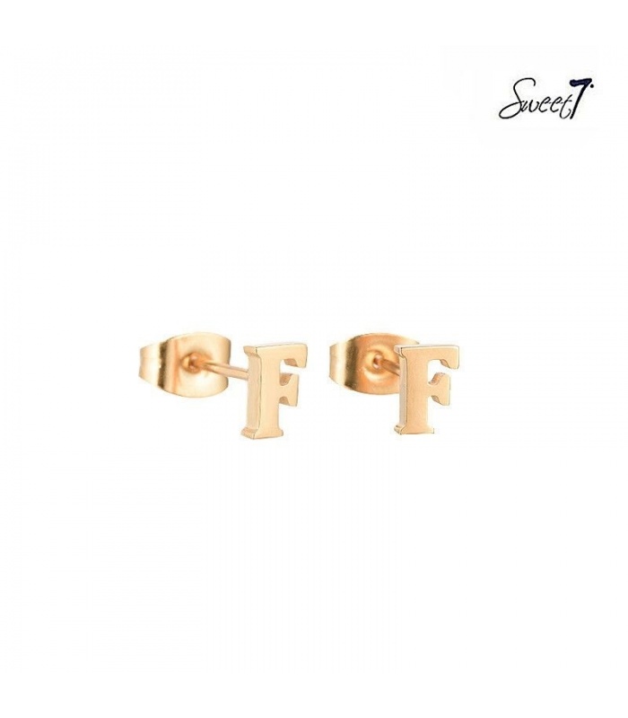 Roségoudkleurige oorstekers letter F.