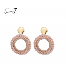 Pastel roze oorhangers met dubbele ringen en glas kralen De lengte van deze oorbel is circa 7 cm. Voor oren met gaatjes. De oorbellen zijn nikkelvrij. De oorbellen zijn voorzien van stoppertjes.