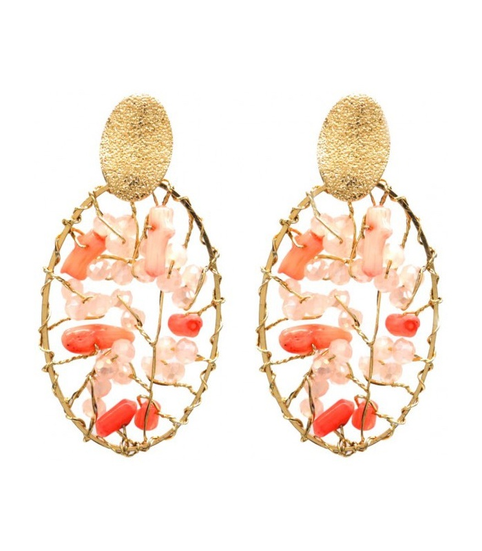 De oorhangers zijn voorzien van een goudkleurige rand, een delicaat koord en een bewerkt oorstukje, wat zorgt voor een stijlvolle en verfijnde uitstraling.