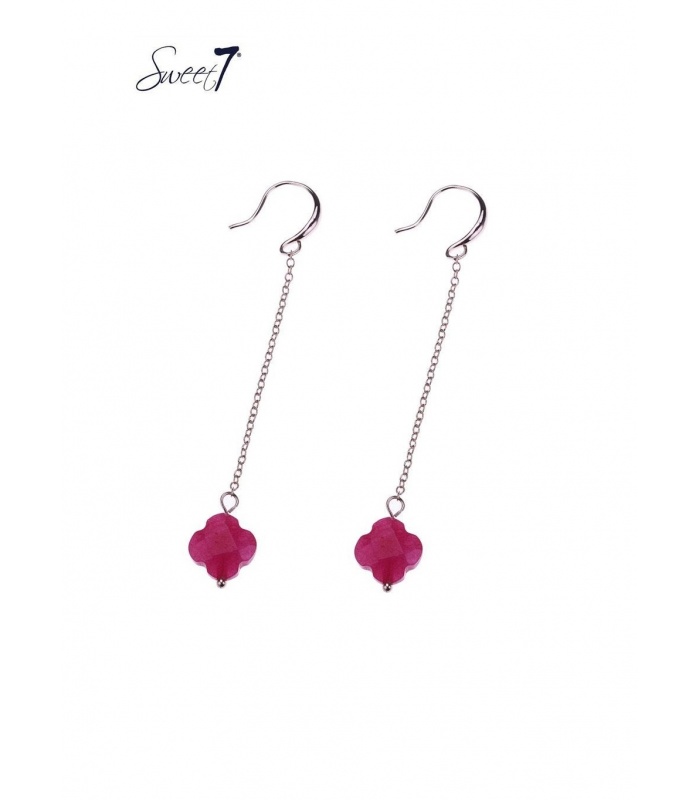 Langwerpige oorbellen met roze natuursteen hanger en rosegold kettinkje