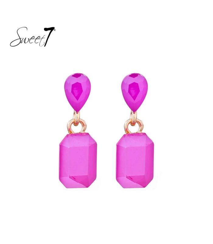 Hoe geef je je look een instant boost? Deze fuchsia oorbellen van Sweet7 zorgen voor een gedurfde touch zonder te overdrijven. De combinatie van een glanzende druppel en een strak geslepen steen in levendig roze trekt de aandacht, stijlvol, fris en krachtig.