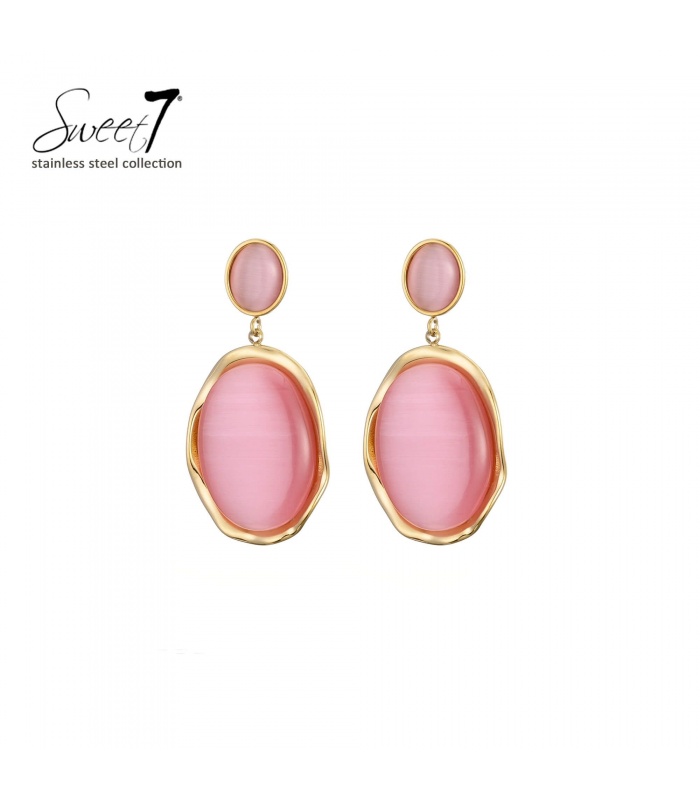 Wil je een oorbel die direct luxe uitstraalt? Deze oorbellen met ovale roze steen in goudkleurige zetting geven jouw look een elegante touch. De glanzende afwerking en zachte kleur maken deze dames oorbellen perfect voor een chique en moderne stijl.