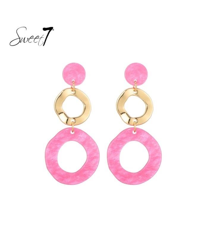 Deze oorbellen sluiten aan bij de trend van grote oorbellen en kleurrijke sieraden. De mix van roze en goudkleur geeft een frisse, modieuze touch. Perfect als fashion oorbel bij zowel een basic als uitgesproken outfit.