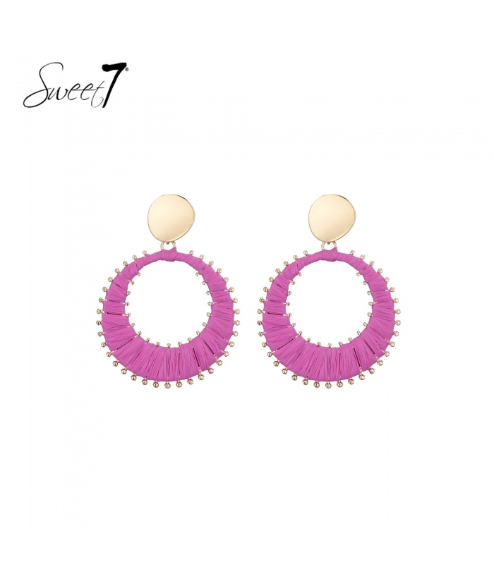 De ronde vorm en raffia zorgen voor een luchtig effect. Deze oorbellen combineren moeiteloos met zowel casual als chique looks. Draag deze oorbel en voeg een energieke, stijlvolle stijl toe aan je sieradencollectie.