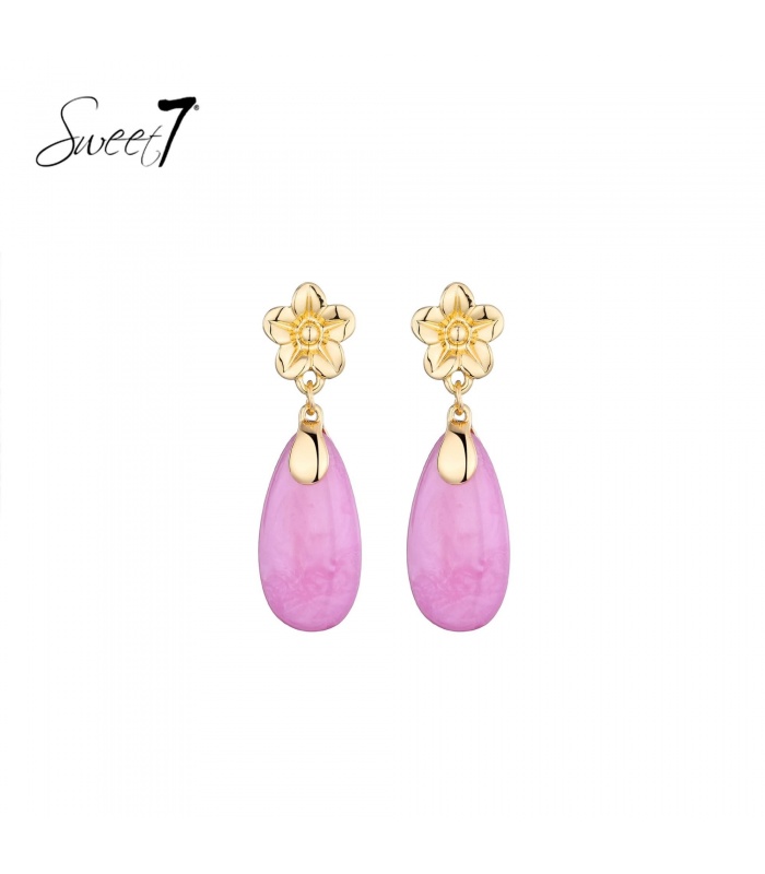 Hoe breng je een vleugje romantiek in je look zonder te overdrijven? Deze oorbellen van Sweet7 zijn het antwoord. De goudkleurige bloementop straalt elegantie uit, terwijl de druppelvormige hanger in zachtroze een subtiel en stijlvol accent toevoegt. Perfect voor wie houdt van vrouwelijke details met een moderne touch.