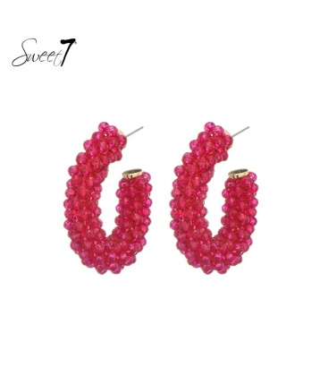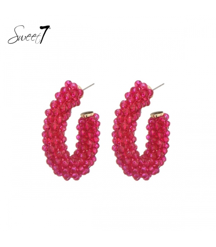 Voeg een vleugje kleur en stijl toe aan je look met deze prachtige roze glas kralen oorhangers van Sweet7. Deze oorhangers zijn het perfecte accessoire om je outfit te verfraaien en een speelse flair toe te voegen aan je stijl.