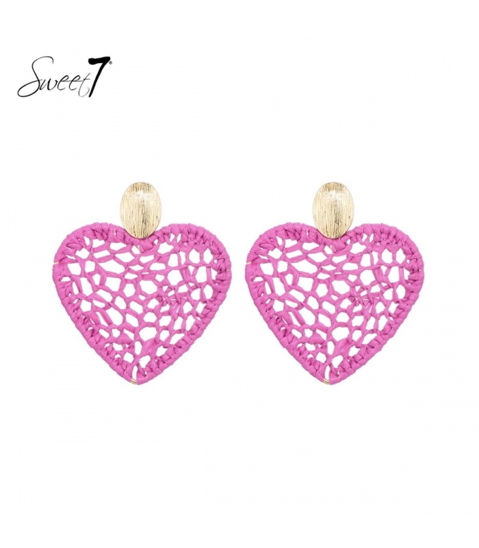 Wil je jouw outfit een speelse en unieke touch geven? Maak kennis met deze schattige roze harten oorhangers van raffia met een goudkleurig oorstukje van het trendy merk Sweet7. Deze oorhangers zijn niet alleen schattig, maar ook van uitstekende kwaliteit.