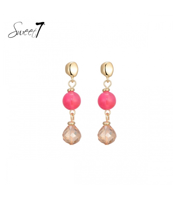 Roze oorhangers met een glas kraal en een goudkleurig oor stukje