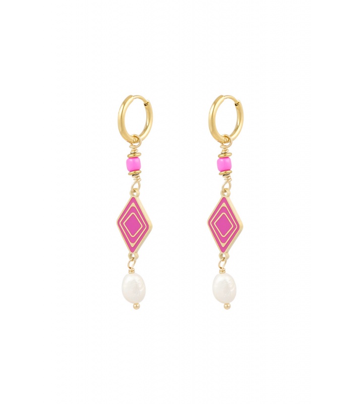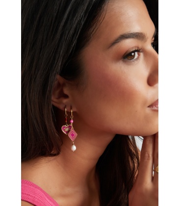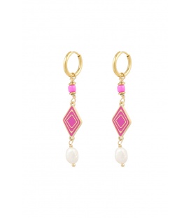 Deze oorringen zijn een must-have voor elke moderne fashionista. De goudkleurige afwerking past bij elke huidtint en voegt een luxe uitstraling toe aan je stijl. De roze bedel en parel accentueren je vrouwelijkheid en voegen een zachte, romantische toets toe aan je outfit. Of je nu op zoek bent naar een geschenk voor een speciaal iemand of gewoon jezelf wilt verwennen, deze oorringen zijn een tijdloze keuze die je look compleet maken.