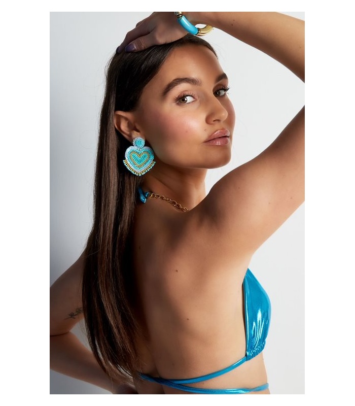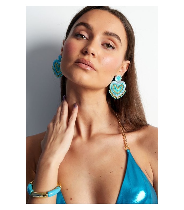 Statement item!! Hoe tof is dit paar kralen oorbellen in de vorm van een roze met gouden hart en franjes! Met deze Eye-catcher steel jij meteen de show! De oorbellen zijn perfect te dragen tijdens een tof festival of leuk strandfeestje. Daarnaast kun je deze oorbellen perfect stylen met meerdere roze sieraden. De oorbellen zijn gemaakt van glaskralen stof en stainless steel en hebben een afmeting van 6 x 5 cm.