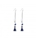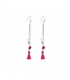 Zilverkleurige oorhangers met roze kwast ,kralen en een metalen blad.