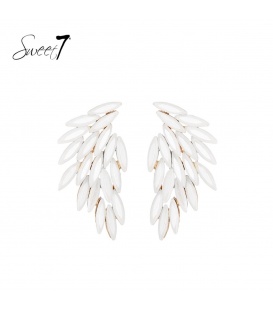 Wit in combinatie met rood, geel of zwart in oorjuwelen maakt elke kleur fris en levendig.