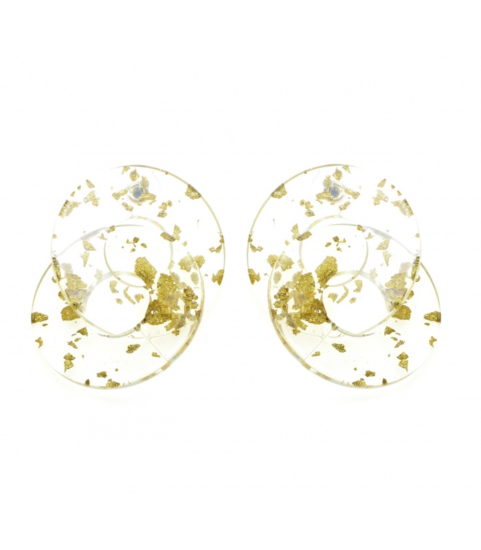 Doorzichtige oorhangers met 2 cirkels en goudkleurige folie