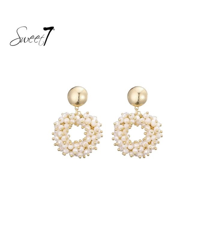 De combinatie van kralen oorbellen en goudkleurige details zorgt voor een zachte, modieuze uitstraling. Deze oorbellen matchen perfect met lichte tinten en minimale fashion. Draag deze oorbel voor een verzorgde en eigentijdse look.