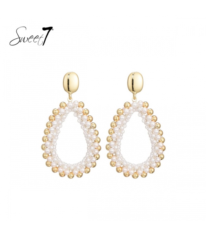 Hoe creeer je een verfijnde look met een accessoire? Deze oorbellen in open druppelvorm combineren goudkleurige bolletjes met een binnenzijde van kleine parelkraaltjes. Een elegante mix van glans en structuur die moeiteloos opvalt.