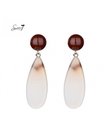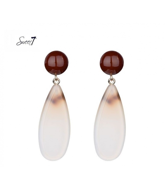 Wit met bruine oorhangers en een bruin oorstukje