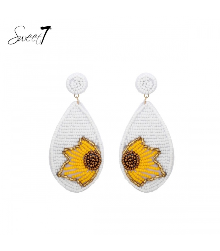 Op zoek naar een paar elegante en stijlvolle oorbellen om je look mee af te maken? Dan zijn de witte glas kralen oorhangers met een mooie bloem motief van Sweet7 de perfecte keuze. Deze prachtige oorbellen zijn een tijdloze toevoeging aan je sieradencollectie.