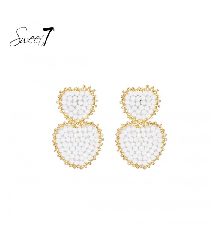 Deze elegante oorbellen combineren witte hartvormige hangers met een subtiele goudkleurige omlijsting, wat zorgt voor een tijdloze en romantische uitstraling. De combinatie van het zuivere wit en de luxe gouden rand maakt ze geschikt voor zowel dagelijkse outfits als speciale gelegenheden.
