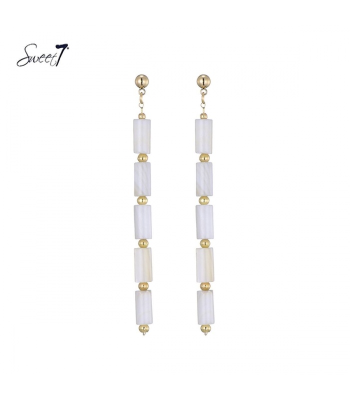 Witte lange oorbellen met goudkleurige accenten van Sweet7.