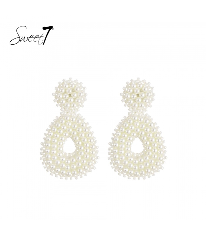 Hoe voeg je een vleugje elegantie toe aan elke look? Deze oorbellen zijn volledig opgebouwd uit kleine witte parels die samen een druppelvorm vormen. De speelse structuur geeft een chique, maar moderne uitstraling. Perfect voor feestelijke gelegenheden.