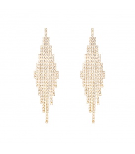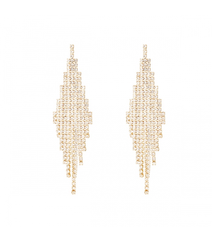 Betover met onze heldere stras stenen oorhangers in een prachtige goudkleurige setting. Deze oorbellen zijn de ultieme keuze voor wie op zoek is naar tijdloze elegantie met een sprankelende twist.