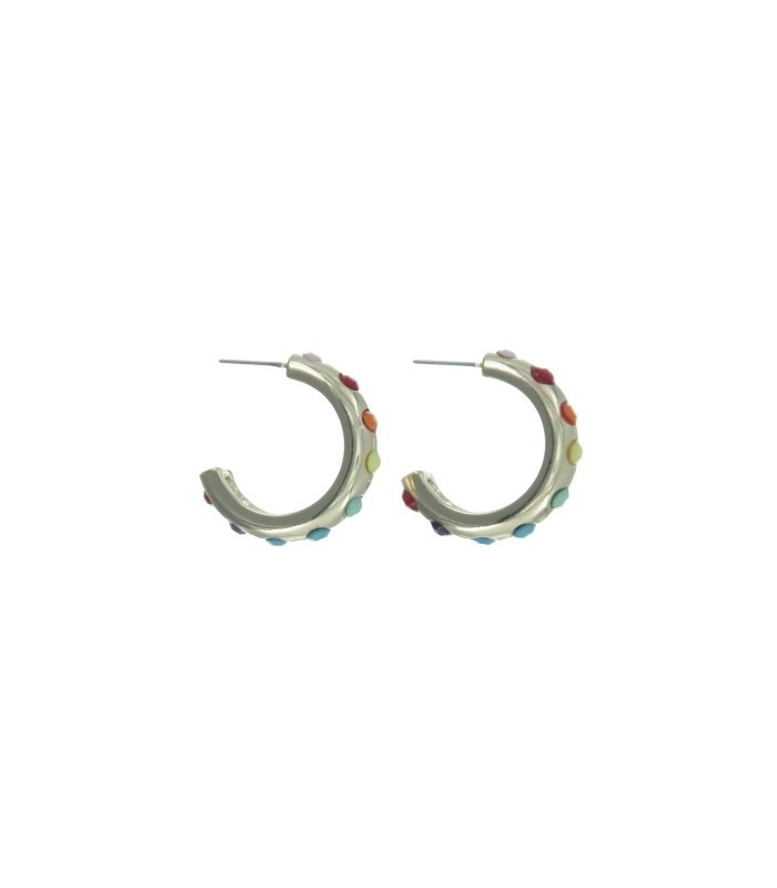 Goudkleurige creool een halve ring met gekleurde steentjes.
