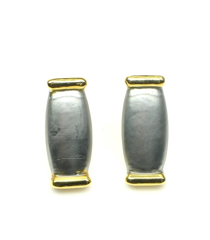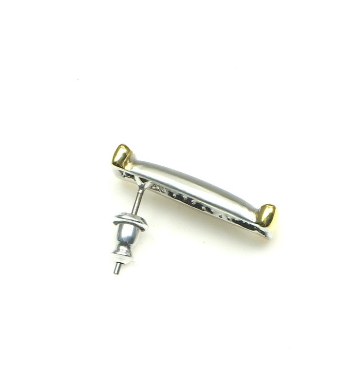 Zilverkleurige oorbellen met goudkleurige rand. Lengte van de oorbel is 2 cm.