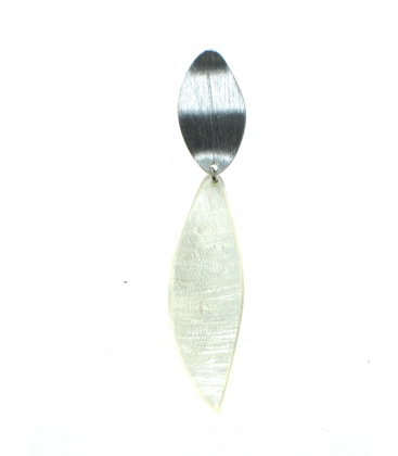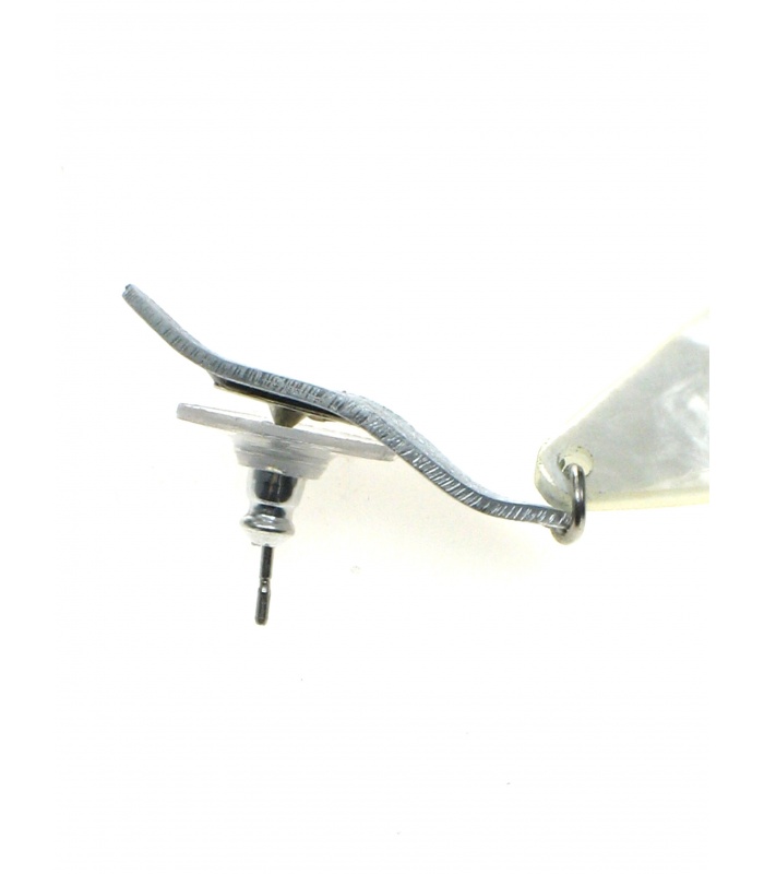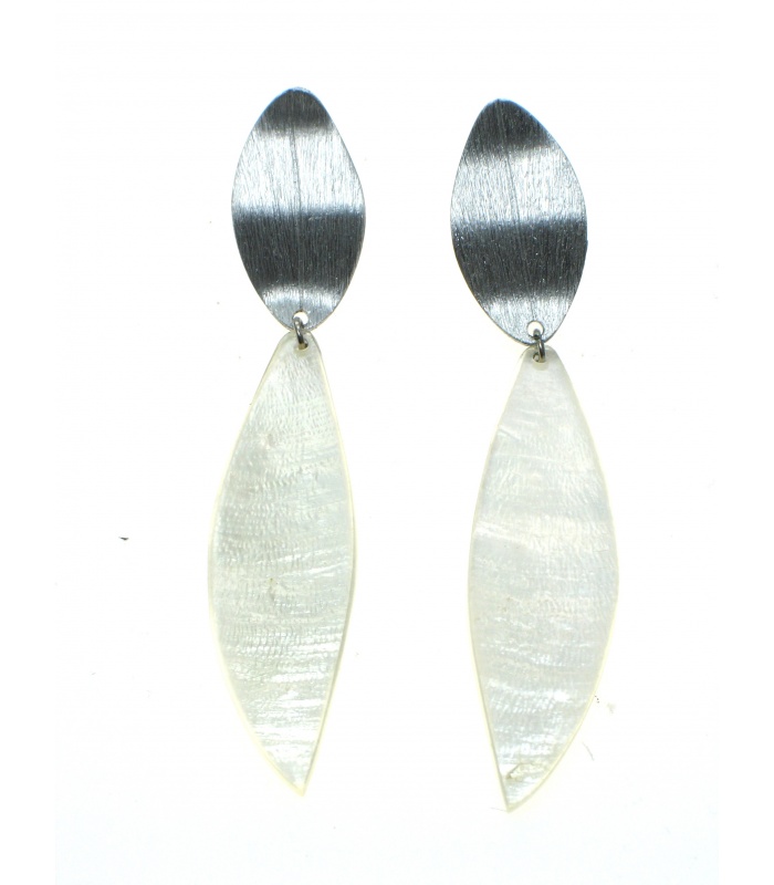 Zilverkleurige langwerpige oorbellen met zilverkleurige steker.