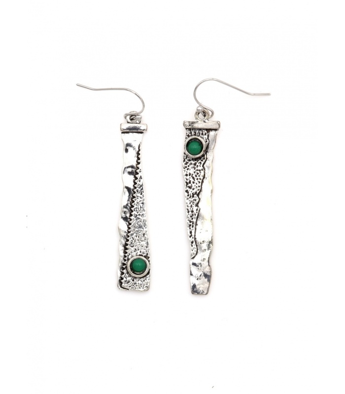 Wat maakt een statement zonder te schreeuwen? Deze zilverkleurige oorbellen met groene accentsteen combineren structuur, vorm en kleur tot een opvallend geheel. De organische textuur geeft een robuust karakter, terwijl de kleine glanzende steen voor balans zorgt.