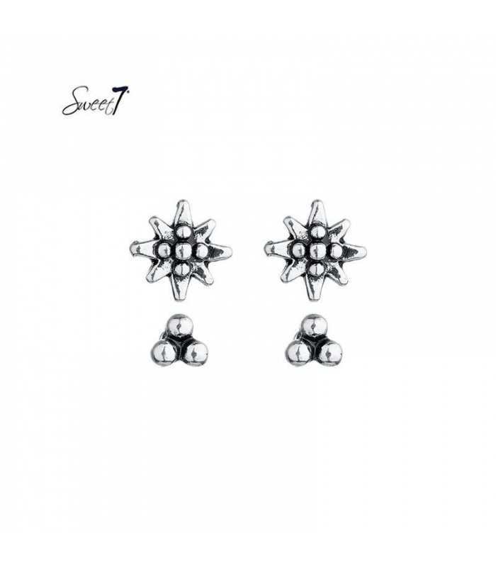 Deze set bevat twee paar zilverkleurige oorbellen: één paar met stervormige stekers en één paar met subtiele bolletjes. De sterren geven een speelse touch aan je look, terwijl de bolletjes zorgen voor een tijdloze elegantie. Ideaal voor zowel dagelijkse outfits als speciale gelegenheden.