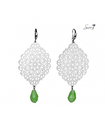 Oorbellen in zilverkleur met een mooie hanger en een groene kralen.
