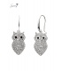 Zilverkleurige oorbellen met als hanger een uiltje en strasssteentjes.