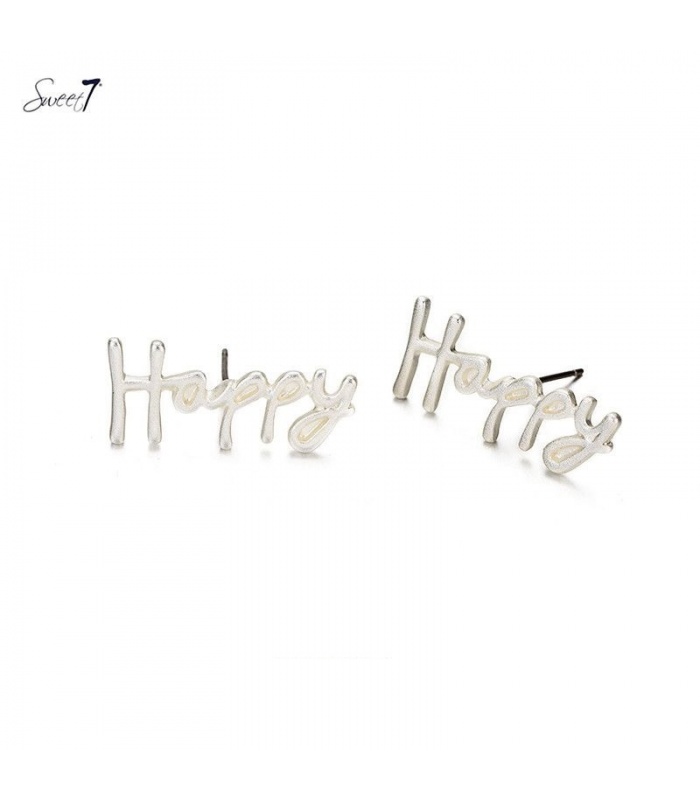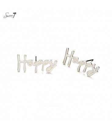 Zilverkleurige oorbellen met de tekst " HAPPY".
