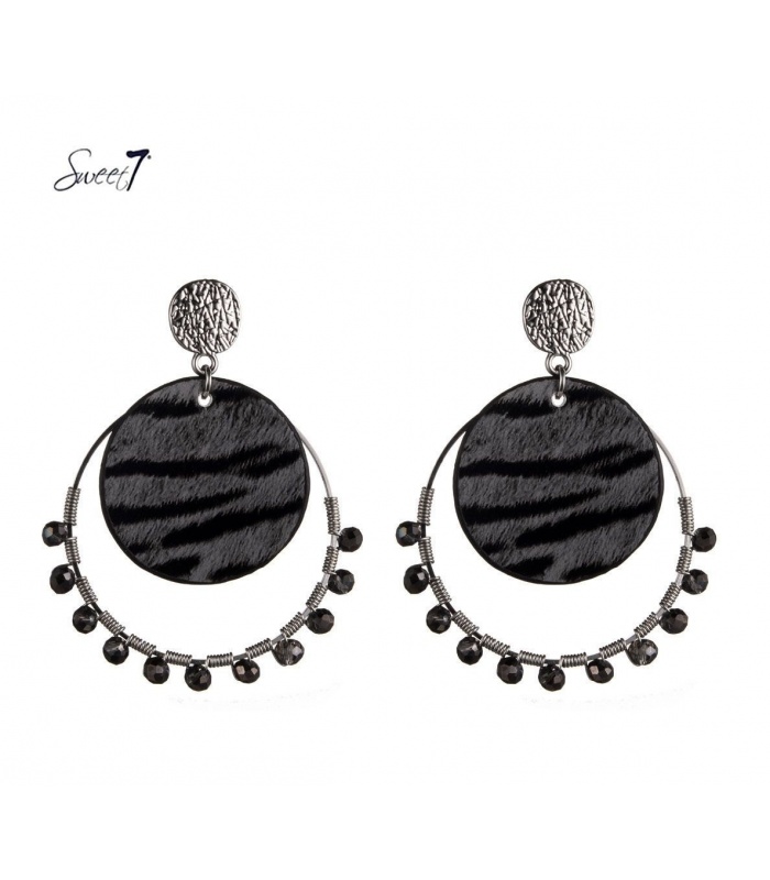 Zilverkleurige oorbellen met kralen en een ronde bedel in de hanger