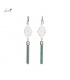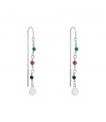 Zilverkleurige oorhangers en met groene kettinkjes.