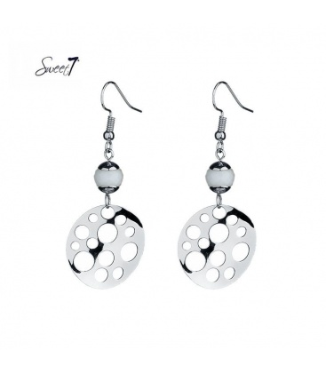 Zilverkleurige oorhangers met een grijs met witte kraal.