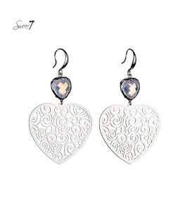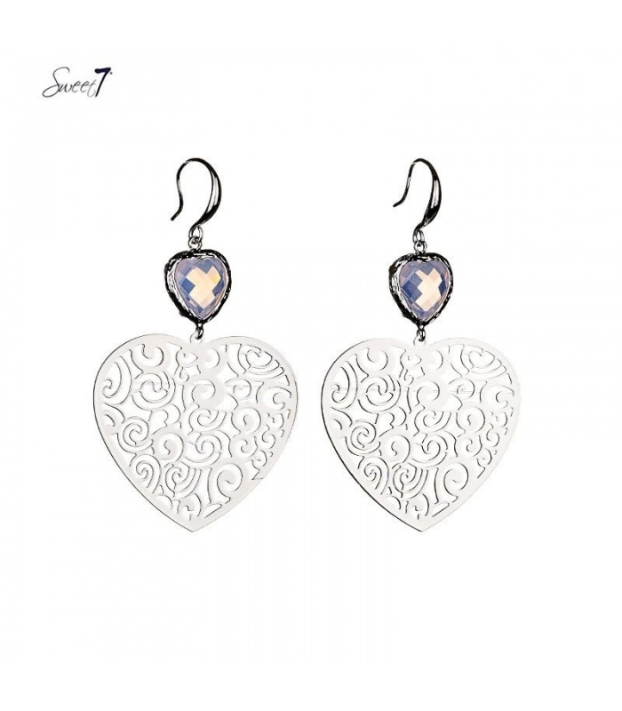 Zilverkleurige oorhangers met een roze harten steentjes