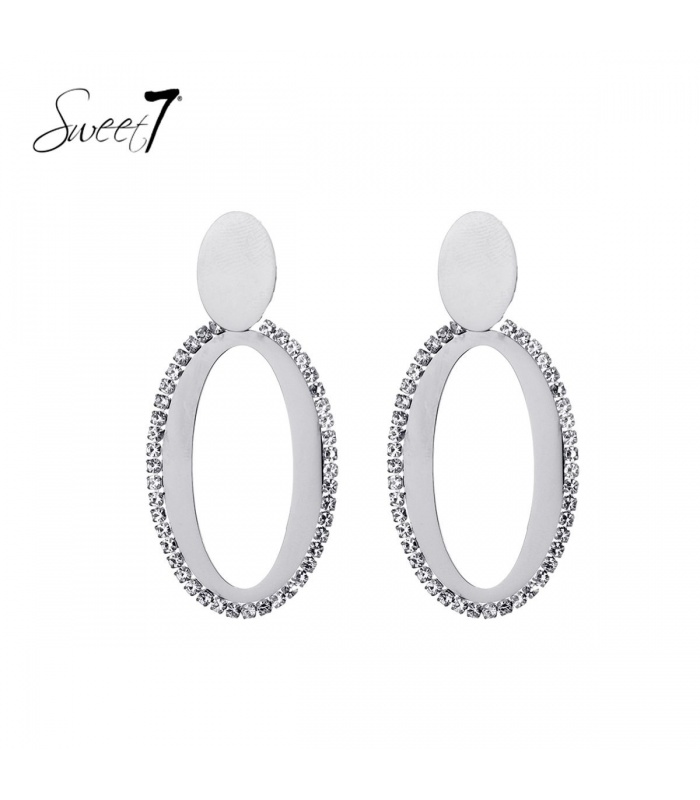 Deze oorhangers zijn met uiterste precisie vervaardigd, met hoogwaardige materialen en een rand van sprankelende strasstenen rondom. Het ontwerp combineert verfijning met een vleugje schittering, waardoor deze oorbellen perfect zijn voor zowel formele gelegenheden als een avondje uit. De zilverkleurige glans en de strasstenen voegen een vleugje luxe toe aan je oren.