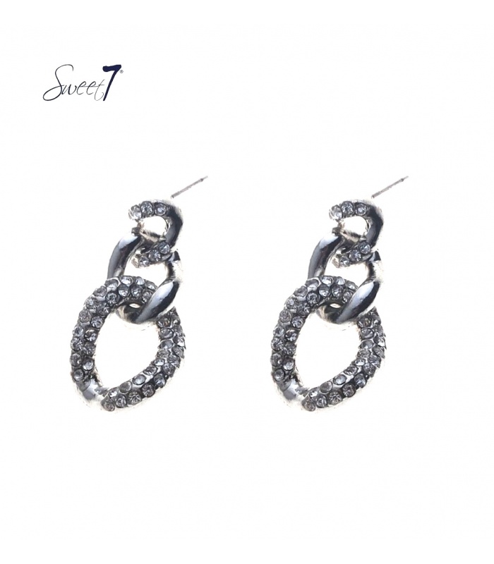 Zilverkleurige oorhangers met strass steentjes.