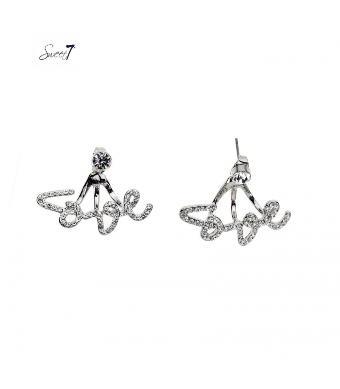 Zilverkleurige oorstekers met de letters LOVE en strass steentjes.
