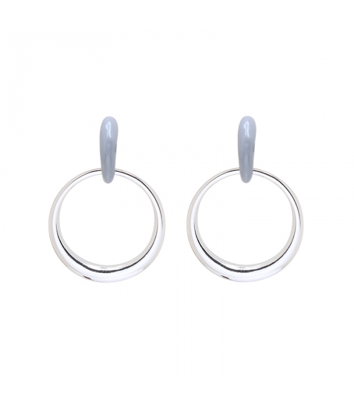 Trendy zilverkleurige oorbellen met een grijs oorstukje.